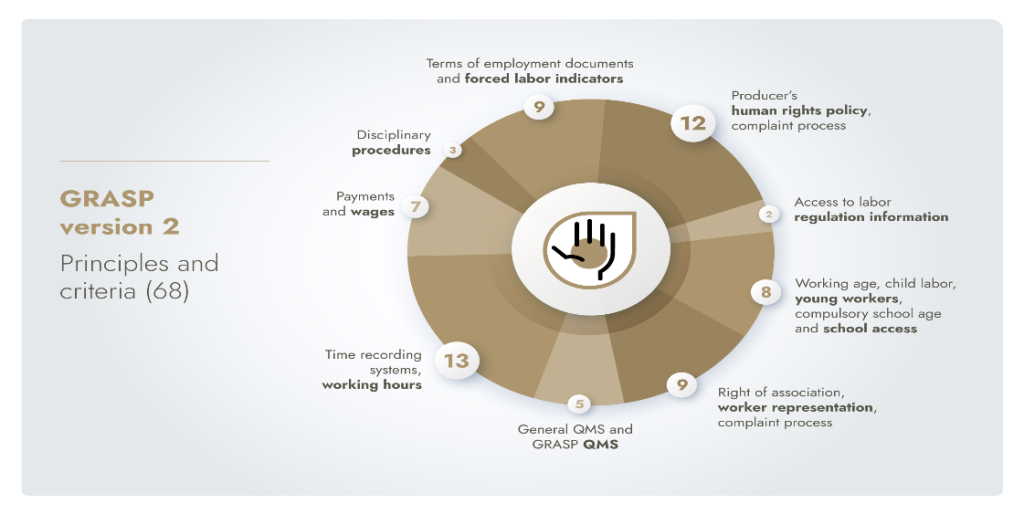 - GRASP (GLOBALGAP Risk Assessment on Social Practices”). Un instrumento de autorregulación típico del modelo de responsabilidad social empresarial (RSE) certificada internacionalmente, sobre la base de una evaluación de calidad de las políticas de salud, seguridad y bienestar de las personas empleadas en el campo.